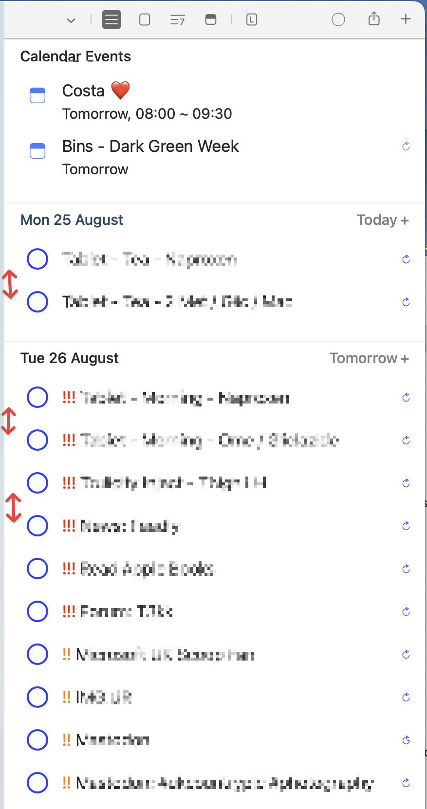 Hi guys I'm pretty sure that I've seen a compact view option on Goodtask (on the Mac) in the past. I've experimenting with new lists (tag v priority) and I'm looking to reduce the space between task items (red arrows).